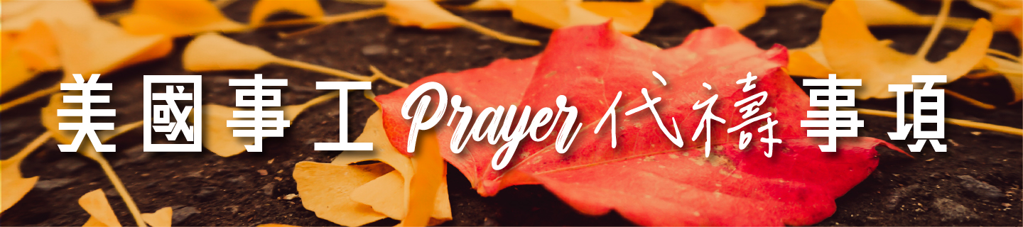 - 為同工們彼此之間可以互相鼓勵,將神的話語融入在我們的生活 - 在工作、家庭和社區中,以及在所作的每一件事上將神擺在首位 - 在事工的資源、運作、以及努力上信靠神的供應禱告。